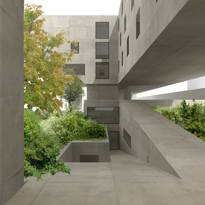 The conceptual foundation of the present design results from the logistic separation of the different user groups as well as from the way how to deal with the present formation of the historical site.