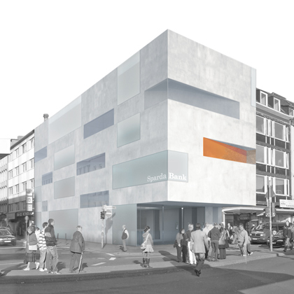 In 2006 the german "Sparda Bank" decided to announce an architectual competition for their new branch office in Bonn. The old degenerated building at the corner of a prominent spot in the middle of the city should be replaced by a new and modern building.