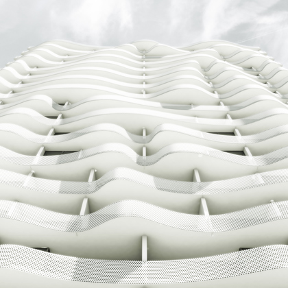 Even if at the first glance the shape of the balconies seems to be arbitrary, the whole composition follows a few strict rules. In principle, the arrangement of the balconies reflects the distribution of the different apartments behind. Each flat has a single balcony with a maximum cantilever in the middle. Thereby the resultant "wave" within each level merges with all the other contiguous waves below and above to one vertical sculpture.