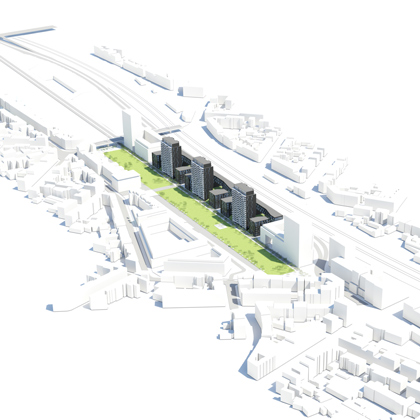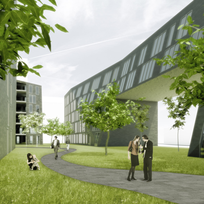 This mixed-use project (housing and offices) is characterized by severe limitations on the design. The urban layout as well as the volumes were already prescribed by a very restrictive and detailed masterplan. Therefore the core idea is, of course, to define the identity of the block within the few residual parameters - namely those pertaining to the facade. Even though only the sketch of a facade certainly is by far not enough for creating architecture and although all the other elements of the design have been elaborated precisely, in this project the west facade of the tower becomes the key element for the whole layout.