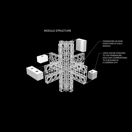 1. The global 3d macro-communication between different modules across the city;